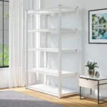 5-Tier Shelf(183x90x40cm, 175kg/Layer) White Steel Frames With White Laminated MDF Board – Versatile for Home, Garage, Office, Shop & Warehouse)